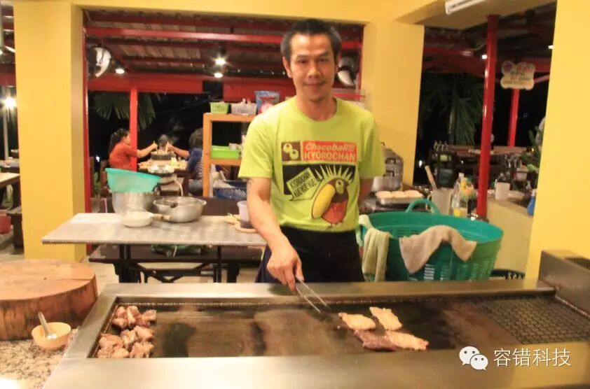找不到就随遇而安,我们发现下车地点有一餐厅,写的全是泰文,我们只认识 219 三个数字,还是博士聪明,说这个肯定是219 的自助餐,上去一问,确实是,看到有牛排,五花肉无数,再次确认219一位,除了酒,其他都包含在内,大赞,相当于人民币40一位呢。关键是,这下没人跟我闹要去蛋炒饭了。
